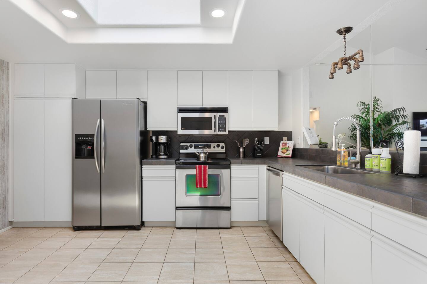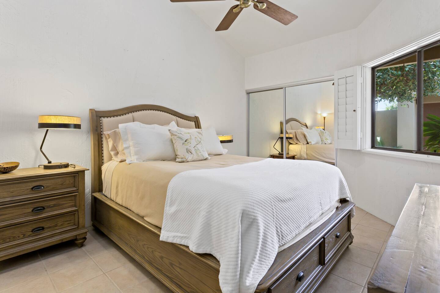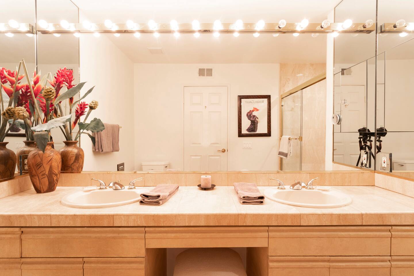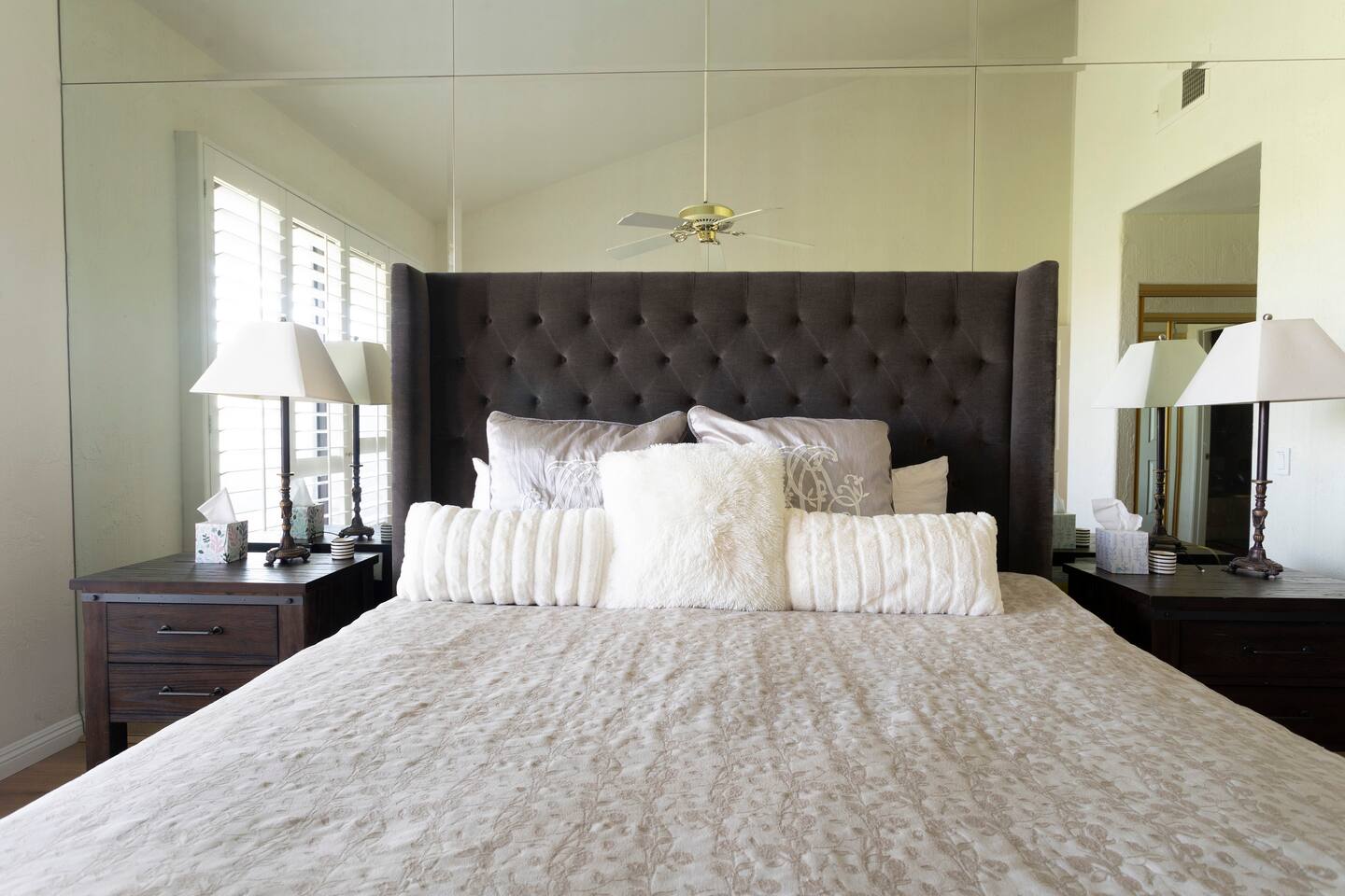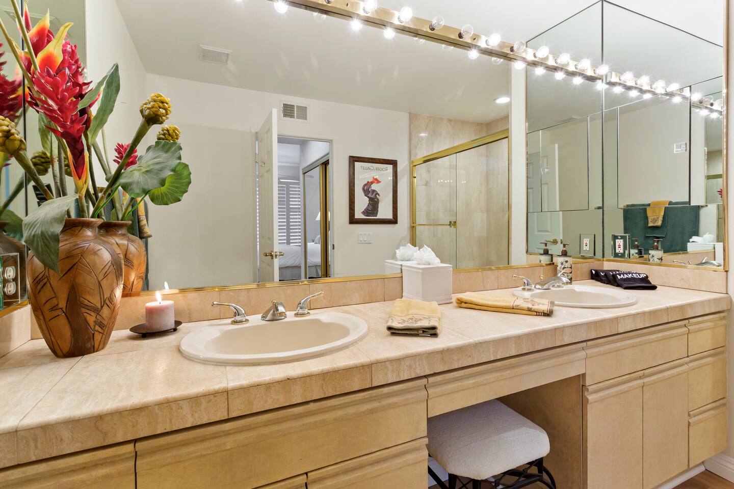 The home is a single-story condo with a welcoming living and dining room concept. There are no upstairs or downstairs neighbors, and no stairs to access the home. There are 3 bedrooms and 3 bathrooms, and all the bedrooms feel private as they are all on separate ends of the home. The master bedroom faces the golf course and has a sliding glass door that leads you out to the backyard with a stunning view. There is a king-size bed and an ensuite bathroom attached. There is a bathtub and a shower, dual vanity sinks, and a vanity station. The second bedroom is close to the front door of the home and has a queen-size bed and an ensuite bathroom attached. There is a bathtub and a shower, a sink, and a vanity station. The third bedroom is close to the front door and just across the hall from the second bedroom and has a queen-size bed and a shared jack-n-jill bathroom attached. There is a standing shower, sink, and a first aid kit, and miscellaneous supplies available in the armoire if needed. This bathroom can be accessed from the hallway with other guests. The master bedroom, second bedroom and living room have TV's. All have Roku/ Smart TV and only the living room has cable. The newly updated kitchen looks out at the dining room and the view of the beautiful golf course. The living room has an open floor plan where you can enjoy the comfy couches and watch a movie on the 62-inch television. There is a Bose soundbar below the television where you can hook up your smart device to it and enjoy some music, just be mindful of the noise and of the neighbors whenever playing music. Music is not allowed to be played outdoors at any time as hefty fines can be assessed. The bookshelf has books for you to enjoy. The dining room table can seat 4 guests comfortably, and there is a small private dining table in the kitchen area as well. There is a bar in the living room that faces the backyard There is a gas BBQ near the entrance of the home in a private courtyard as well as outdoor seating. There is a sliding glass door from the living room as well as the master bedroom that leads you to the backyard that faces the golf course. There are 2 outdoor lounge chairs as well as a table with 2 chairs for you to be able to enjoy the view. There is a nearby pool and spa that’s within walking distance from the front door. The complex has other pools in it as well that can be accessed. There are a few pool areas that require a key for entry. The home temperature is controlled by a Nest that only the owner can access. Please message the host if you need the temperature changed for any reason.