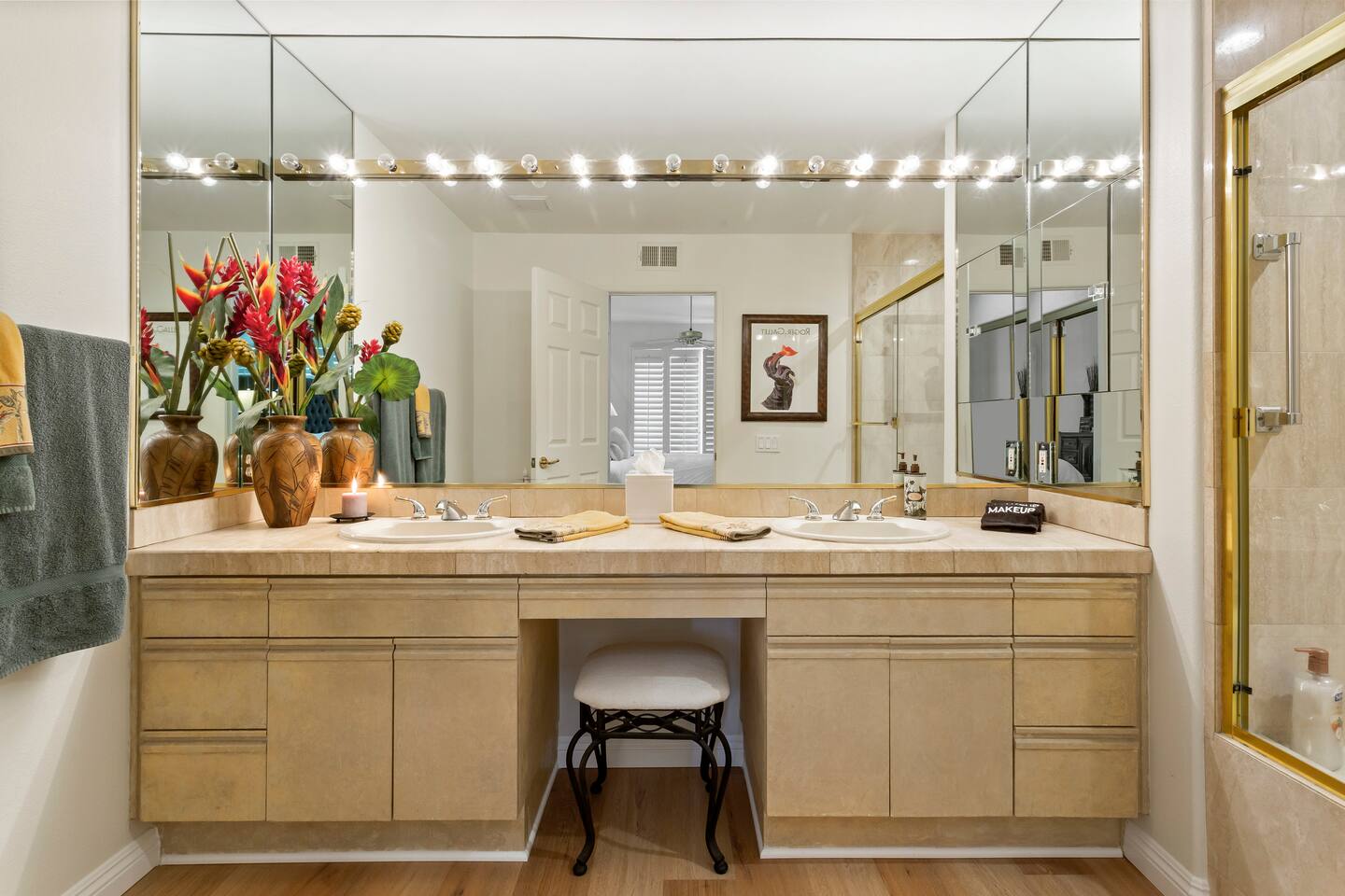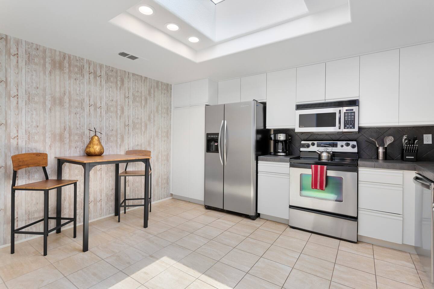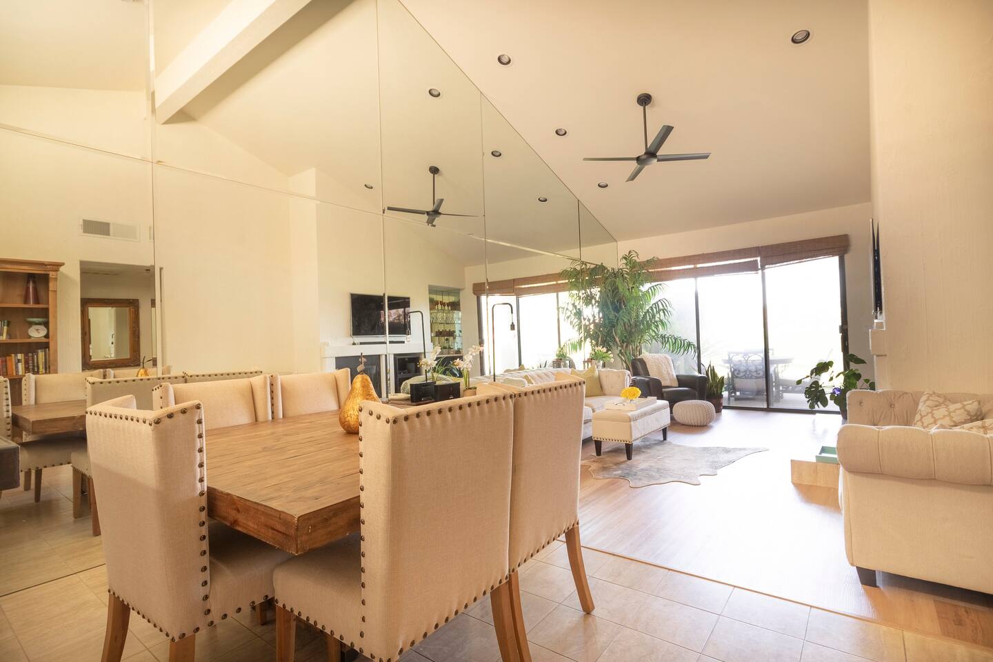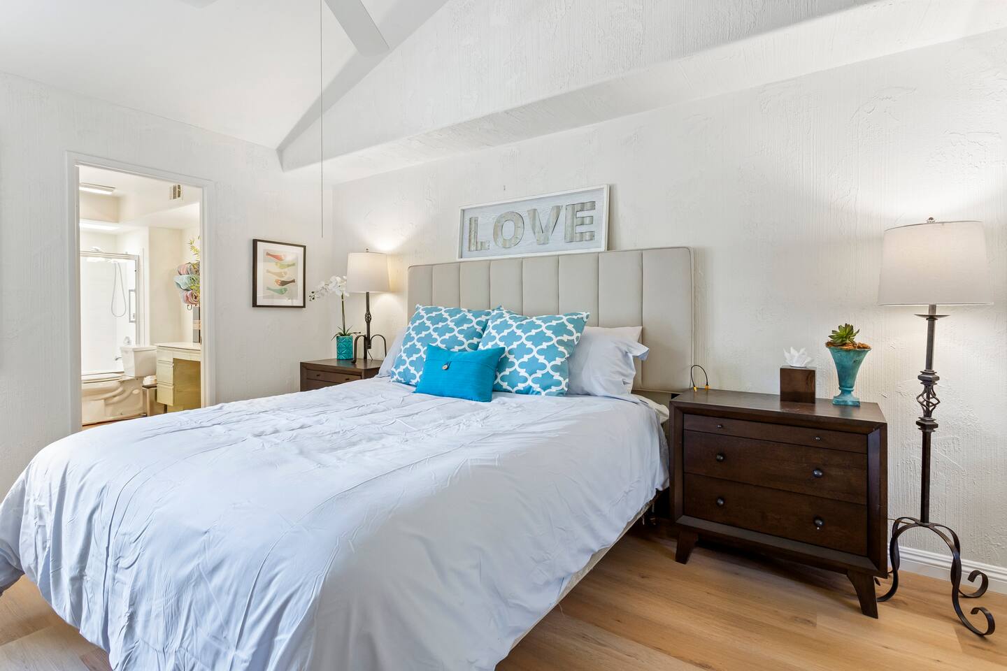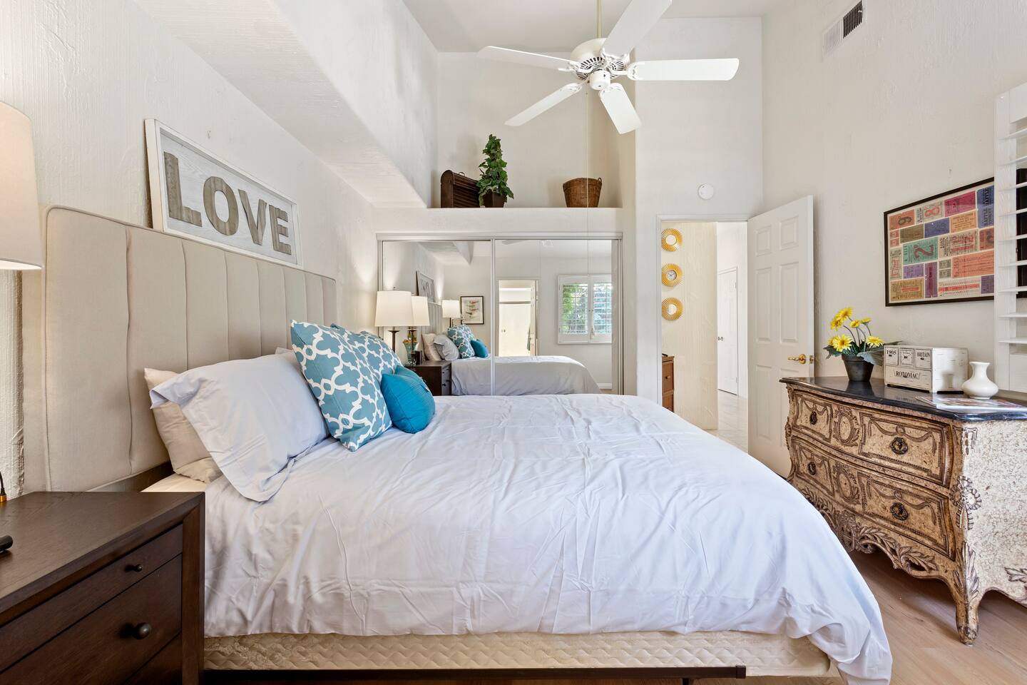 The home is a single-story condo with a welcoming living and dining room concept. There are no upstairs or downstairs neighbors, and no stairs to access the home. There are 3 bedrooms and 3 bathrooms, and all the bedrooms feel private as they are all on separate ends of the home. The master bedroom faces the golf course and has a sliding glass door that leads you out to the backyard with a stunning view. There is a king-size bed and an ensuite bathroom attached. There is a bathtub and a shower, dual vanity sinks, and a vanity station. The second bedroom is close to the front door of the home and has a queen-size bed and an ensuite bathroom attached. There is a bathtub and a shower, a sink, and a vanity station. The third bedroom is close to the front door and just across the hall from the second bedroom and has a queen-size bed and a shared jack-n-jill bathroom attached. There is a standing shower, sink, and a first aid kit, and miscellaneous supplies available in the armoire if needed. This bathroom can be accessed from the hallway with other guests. The master bedroom, second bedroom and living room have TV's. All have Roku/ Smart TV and only the living room has cable. The newly updated kitchen looks out at the dining room and the view of the beautiful golf course. The living room has an open floor plan where you can enjoy the comfy couches and watch a movie on the 62-inch television. There is a Bose soundbar below the television where you can hook up your smart device to it and enjoy some music, just be mindful of the noise and of the neighbors whenever playing music. Music is not allowed to be played outdoors at any time as hefty fines can be assessed. The bookshelf has books for you to enjoy. The dining room table can seat 4 guests comfortably, and there is a small private dining table in the kitchen area as well. There is a bar in the living room that faces the backyard There is a gas BBQ near the entrance of the home in a private courtyard as well as outdoor seating. There is a sliding glass door from the living room as well as the master bedroom that leads you to the backyard that faces the golf course. There are 2 outdoor lounge chairs as well as a table with 2 chairs for you to be able to enjoy the view. There is a nearby pool and spa that’s within walking distance from the front door. The complex has other pools in it as well that can be accessed. There are a few pool areas that require a key for entry. The home temperature is controlled by a Nest that only the owner can access. Please message the host if you need the temperature changed for any reason.