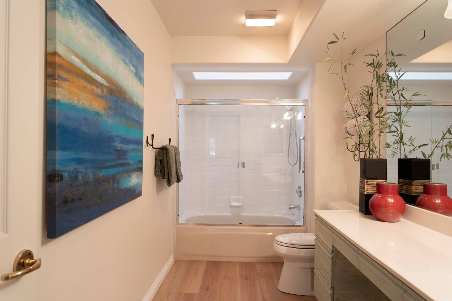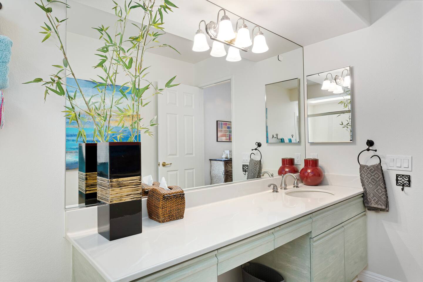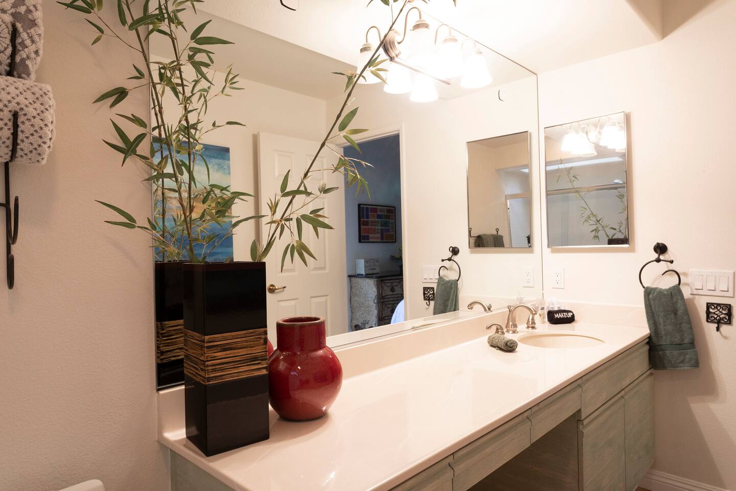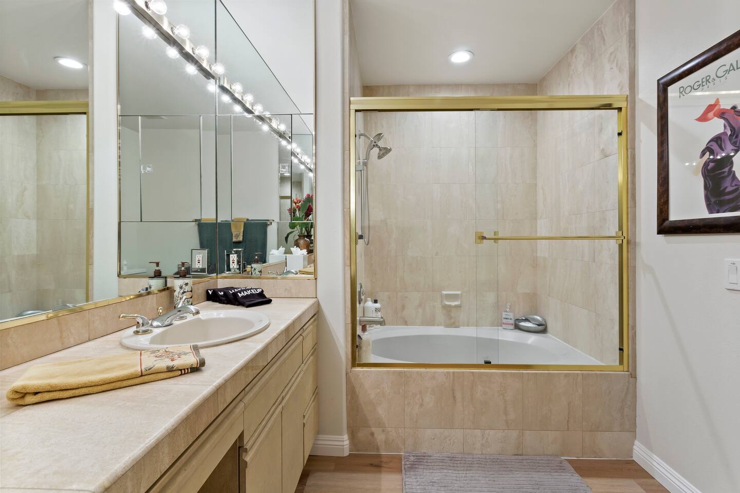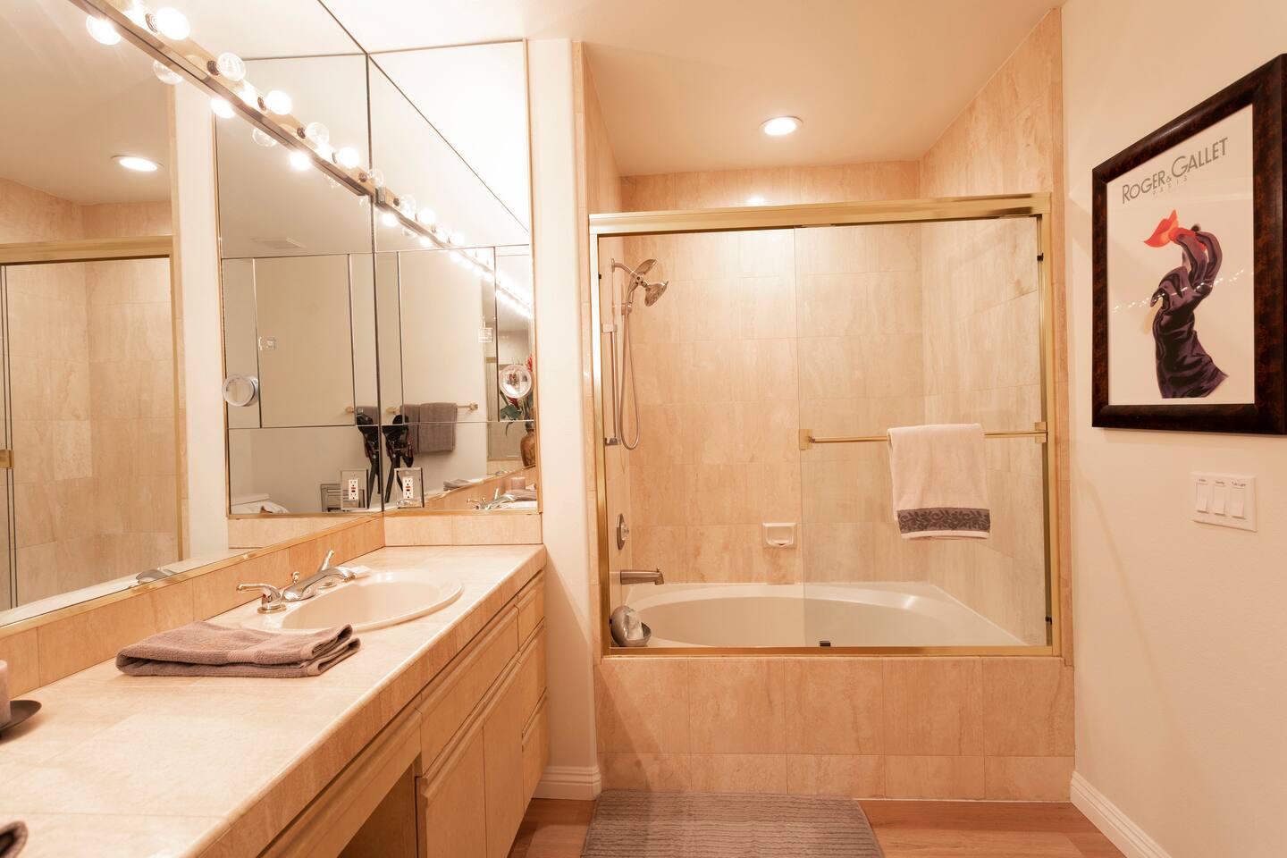 The home is a single-story condo with a welcoming living and dining room concept. There are no upstairs or downstairs neighbors, and no stairs to access the home. There are 3 bedrooms and 3 bathrooms, and all the bedrooms feel private as they are all on separate ends of the home. The master bedroom faces the golf course and has a sliding glass door that leads you out to the backyard with a stunning view. There is a king-size bed and an ensuite bathroom attached. There is a bathtub and a shower, dual vanity sinks, and a vanity station. The second bedroom is close to the front door of the home and has a queen-size bed and an ensuite bathroom attached. There is a bathtub and a shower, a sink, and a vanity station. The third bedroom is close to the front door and just across the hall from the second bedroom and has a queen-size bed and a shared jack-n-jill bathroom attached. There is a standing shower, sink, and a first aid kit, and miscellaneous supplies available in the armoire if needed. This bathroom can be accessed from the hallway with other guests. The master bedroom, second bedroom and living room have TV's. All have Roku/ Smart TV and only the living room has cable. The newly updated kitchen looks out at the dining room and the view of the beautiful golf course. The living room has an open floor plan where you can enjoy the comfy couches and watch a movie on the 62-inch television. There is a Bose soundbar below the television where you can hook up your smart device to it and enjoy some music, just be mindful of the noise and of the neighbors whenever playing music. Music is not allowed to be played outdoors at any time as hefty fines can be assessed. The bookshelf has books for you to enjoy. The dining room table can seat 4 guests comfortably, and there is a small private dining table in the kitchen area as well. There is a bar in the living room that faces the backyard There is a gas BBQ near the entrance of the home in a private courtyard as well as outdoor seating. There is a sliding glass door from the living room as well as the master bedroom that leads you to the backyard that faces the golf course. There are 2 outdoor lounge chairs as well as a table with 2 chairs for you to be able to enjoy the view. There is a nearby pool and spa that’s within walking distance from the front door. The complex has other pools in it as well that can be accessed. There are a few pool areas that require a key for entry. The home temperature is controlled by a Nest that only the owner can access. Please message the host if you need the temperature changed for any reason.