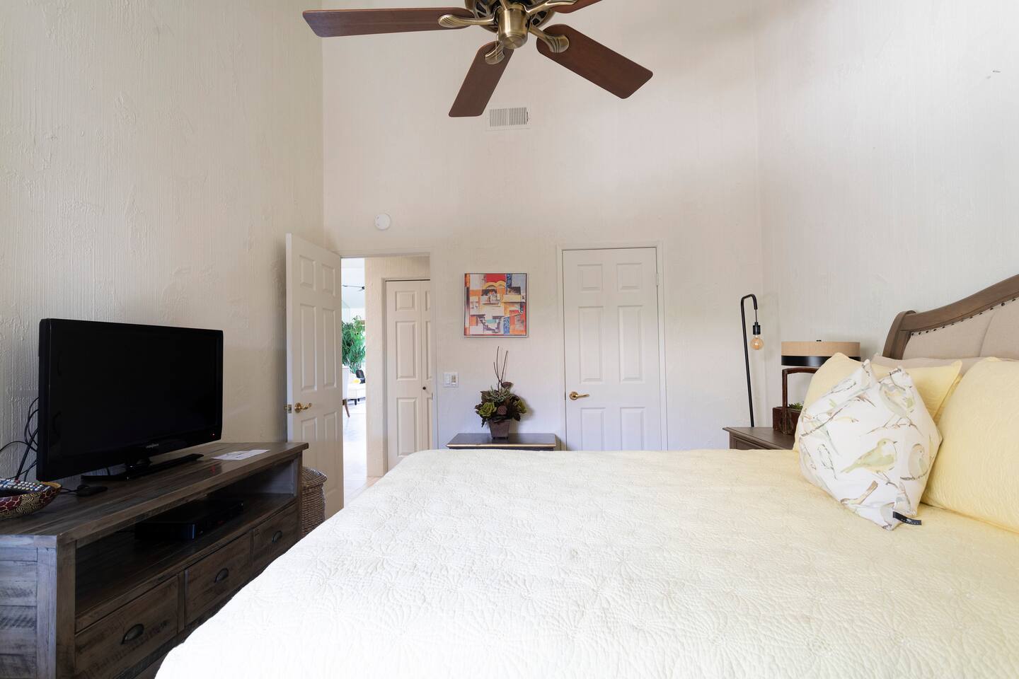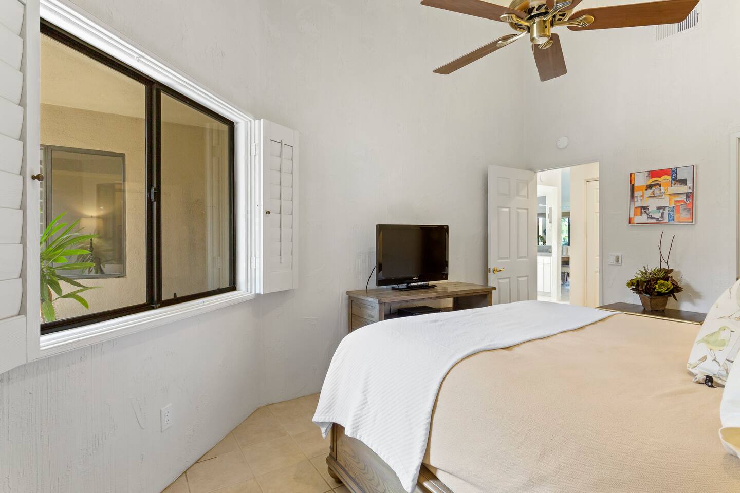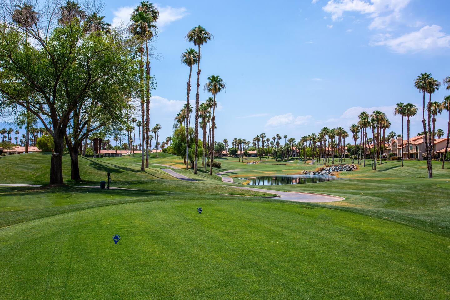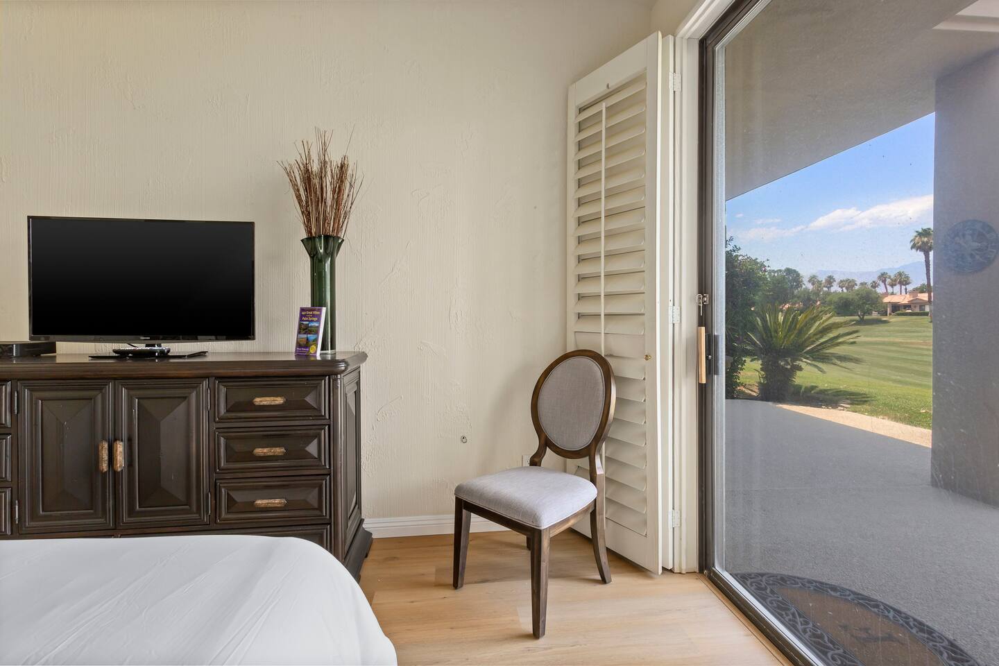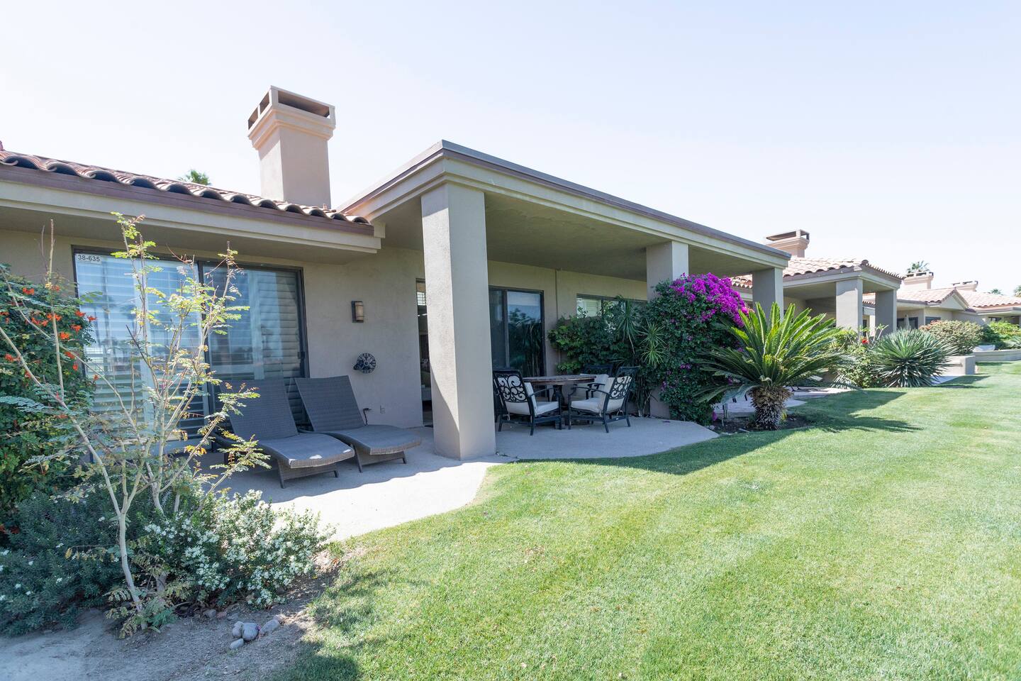 Our cozy condo is located in the exclusive gated Palm Valley Country Club. Our single story condo is perfect for families, couples, or a group of friends wanting to enjoy a beautiful sunny southern California vacation. There are 3 master bedrooms, a large kitchen with all the essentials, and a cozy patio for BBQ and entertainment. You can enjoy a pool and jacuzzi steps away from the front door, and a view of the 36-hole golf course. STR2023-0470