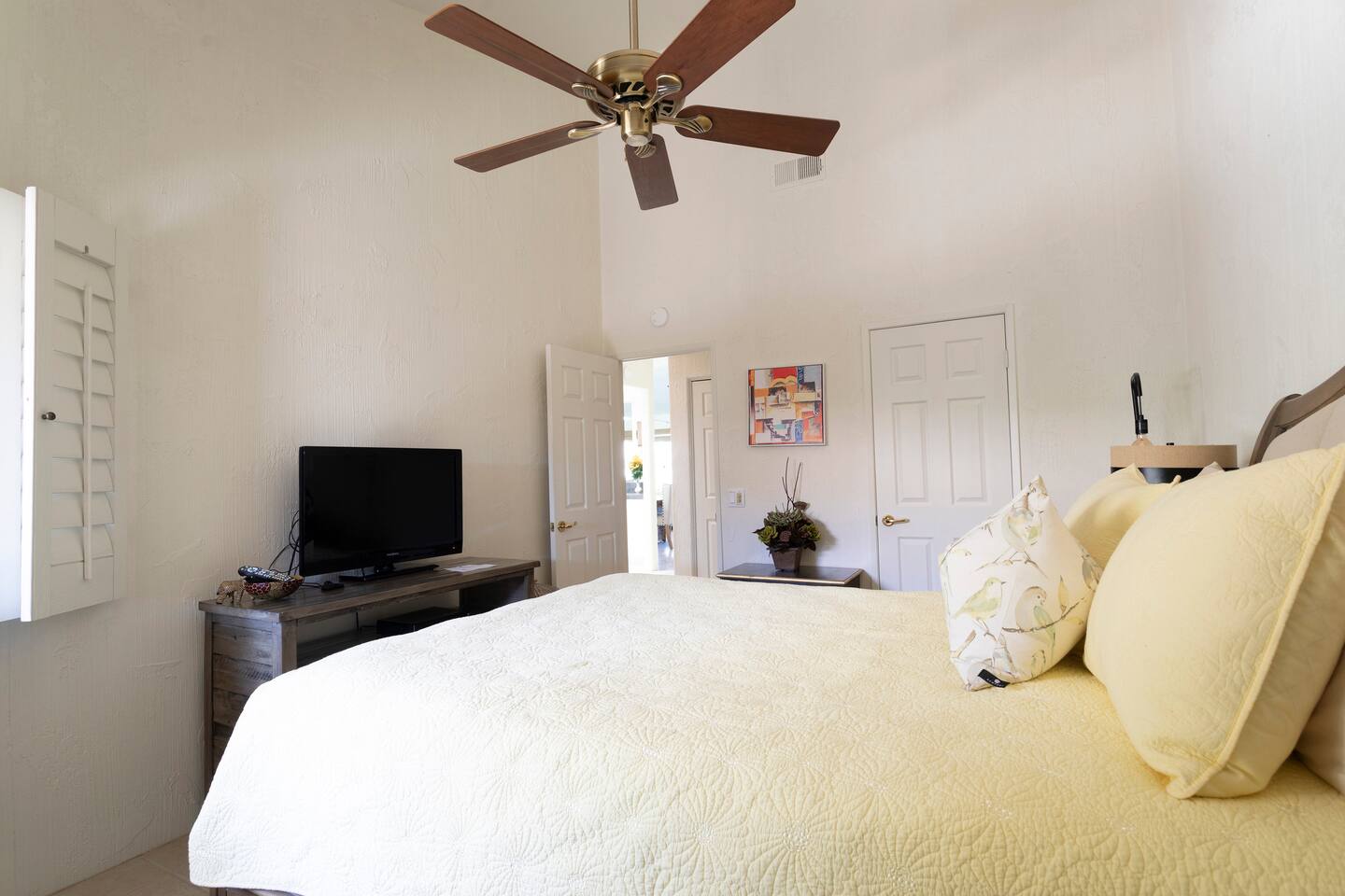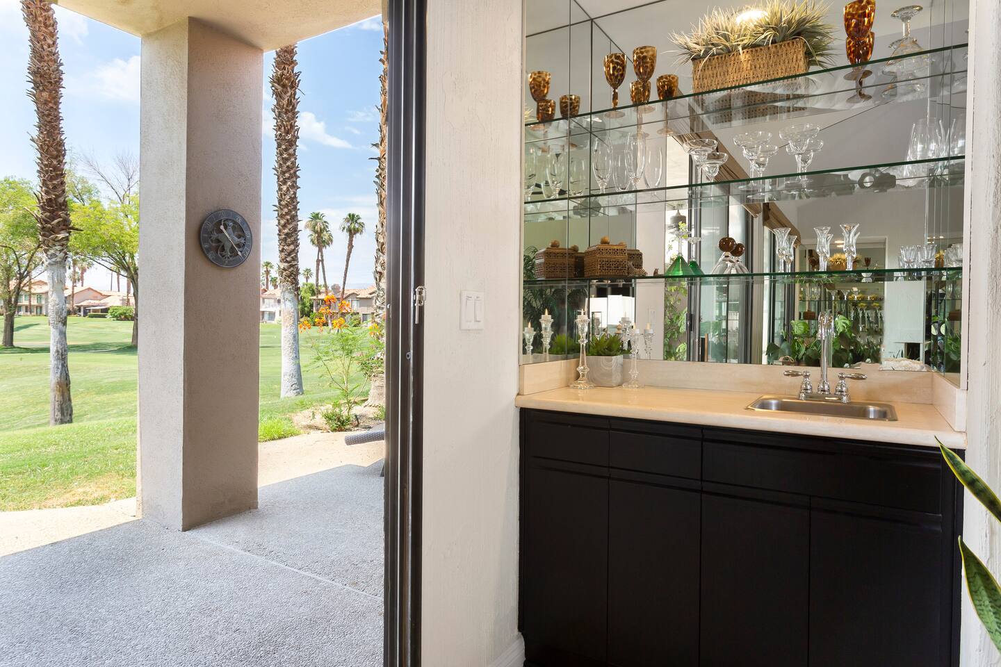 Guests will have the home to themselves. There is a shared pool and spa within walking distance to the home and the community also has other shared pools and spas to enjoy. The home faces the golf course which is a members-only course that you can enjoy if you are a member of the Palm Valley Country Club. The other amenities available to members are tennis, the gym, and Pickleball. Please note the potential to hear traffic/train noise as the home has the convenience of being close to the 10 freeway, but some traffic/train noise can be heard throughout the day.